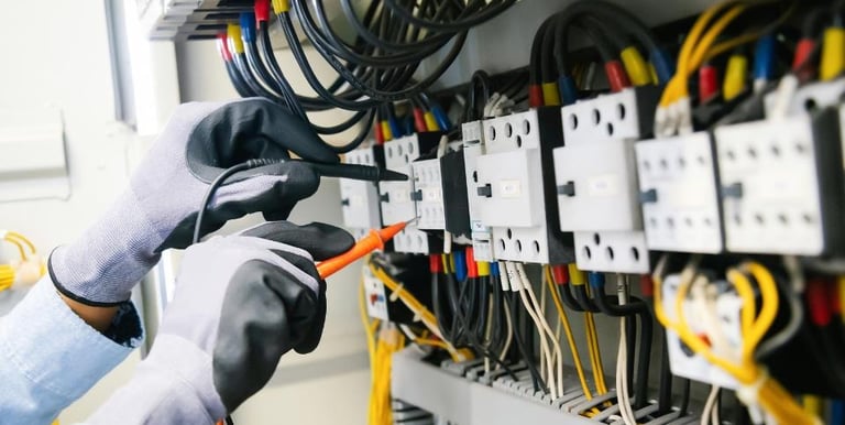 Instalação, manutenção e reparação de sistemas elétricos industriais, incluindo quadros elétricos, redes de alimentação e equipamentos